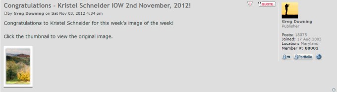 – Wonderful photo Kristel! and a fantastic and well deserved IOW!!!