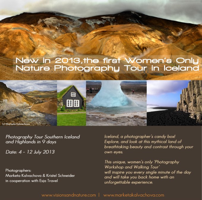 Diverse scenery will take your breath away as well as the different light conditions and untouched nature sceneries. We will explore the South coast of Iceland by car and along walking trails. Although the main focus will be Landscape Photography those of you who like macro or close-up photography will have plenty of opportunities to indulge during the walks. You will get personal field instruction and photo feedback. There will be no competition or lots of technical talks but a great learning experience, and of course a lot of fun with great out-door activities. We will travel in a small group and sleep in guesthouses whose warm and welcoming owners will make you feel at home. In the evening we will share enjoyable nice local food.